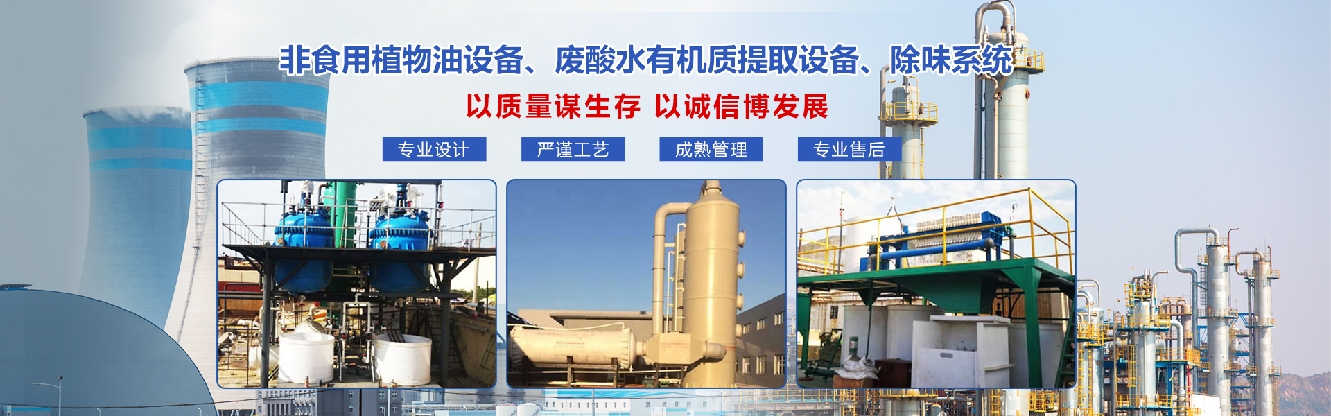 海南盛陽世紀機械設備有限公司是一家專門從事非食用植物油生產設備、廢酸水有機質提取設備、除味系統、水處理工藝設備的設計、研發、制造、銷售、租賃以及技術培訓、自動化設計等一站式服務的專業公司
